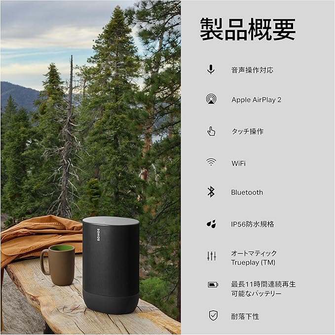 Sonos Move 【VGP2024 Bluetoothスピーカー(5万円以上7.5万円未満)部門 受賞】ソノス ムーブ Portable Speaker ポータブルスピーカー Bluetooth搭載 Amazon Alexa搭載 MOVE1JP1BLK
