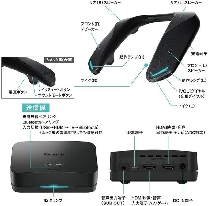 パナソニック ゲーミングネックスピーカー SC-GNW30 ワイヤレスモデル Bluetooth SOUNDSLAYER 4ch リアルサラウンド ボイスチャット ブラック