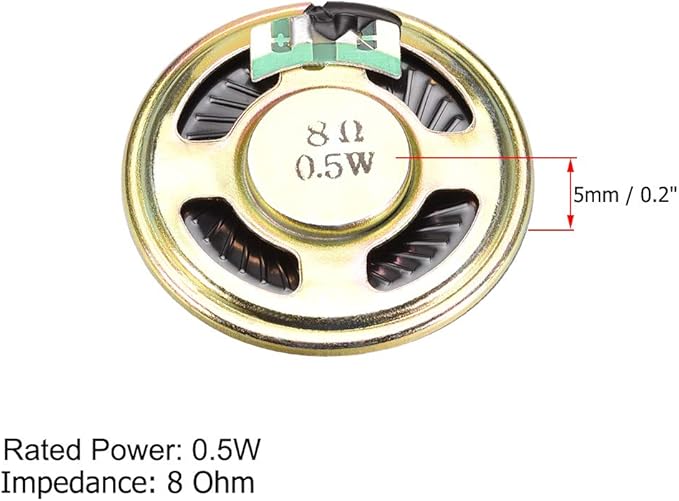 パラメータ - 定格電力: 0.5W; インピーダンス: 8 Ohm.