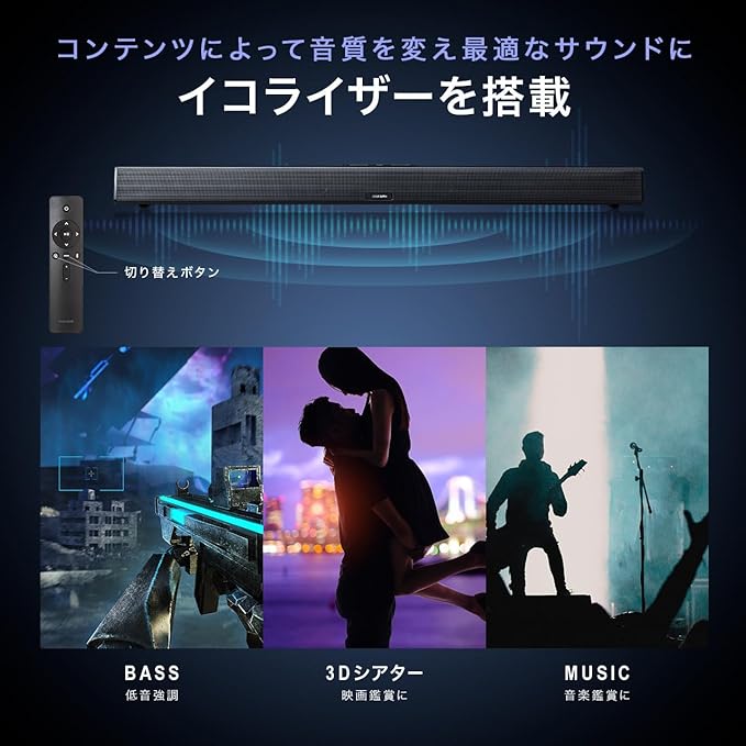 ジャンルに合わせて選べる3つのサウンドモードを搭載しています。(BASS/3Dシアター/MUSICモード)保証期間:ご購入日より6ヶ月
