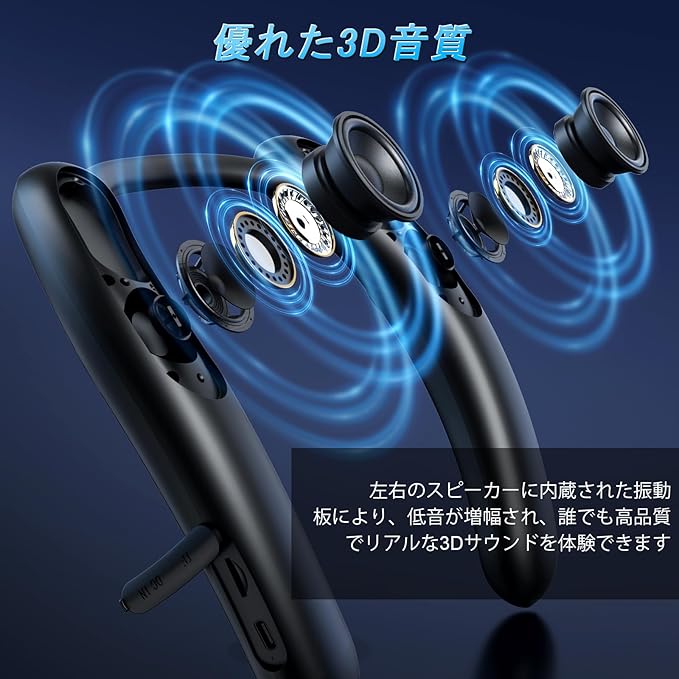 ネックスピーカー、クリアなサウンド、ステレオ、簡単操作、ポータブルネックスピーカー/3Dサラウンドサウンド/HD通話/防水/内蔵アンプ、Sound Assistシリーズ、ワイヤレスネックバンドスピーカー