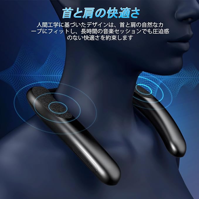 【軽量&快適】軽量のワイヤレスネックスピーカーは、首に優しくフィットし、肩にかかるので、長時間の使用でも快適で安心です。重さはわずか150gで、肩にそっともたれかかれば、そこにあることを忘れてしまうでしょう。(注:ペースメーカーをご使用の方には適していません)