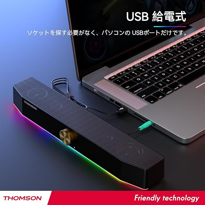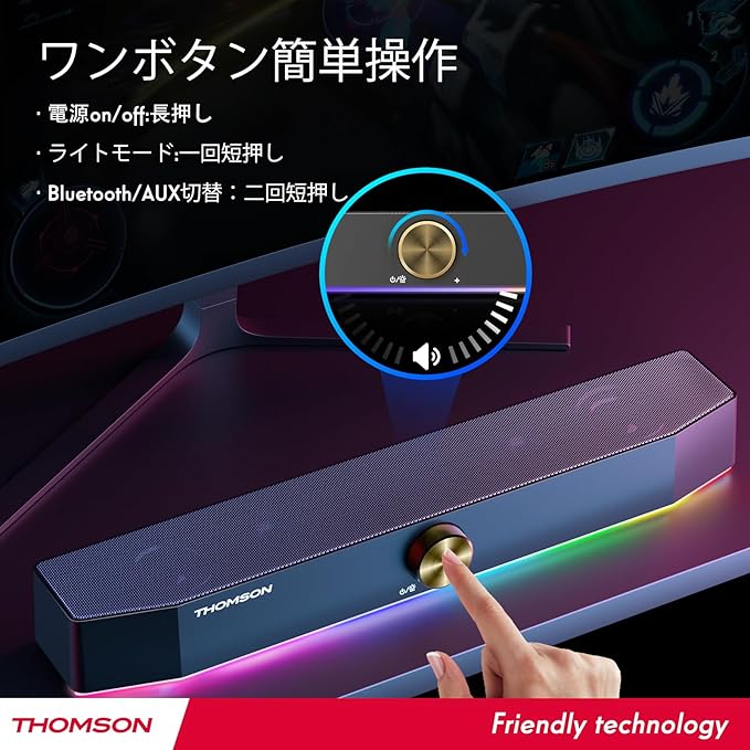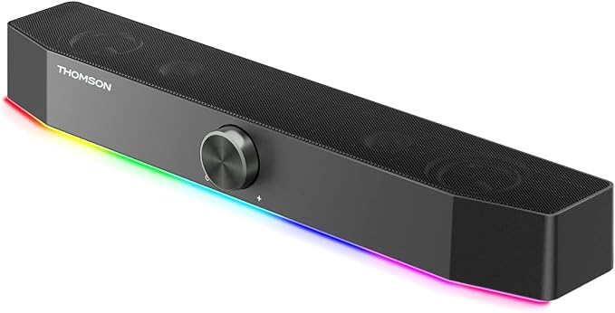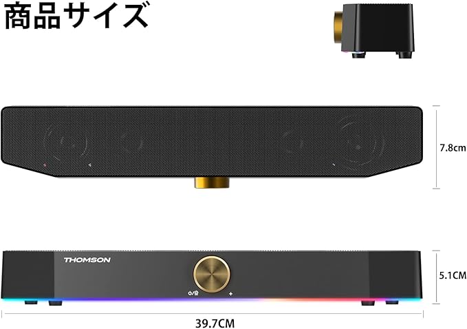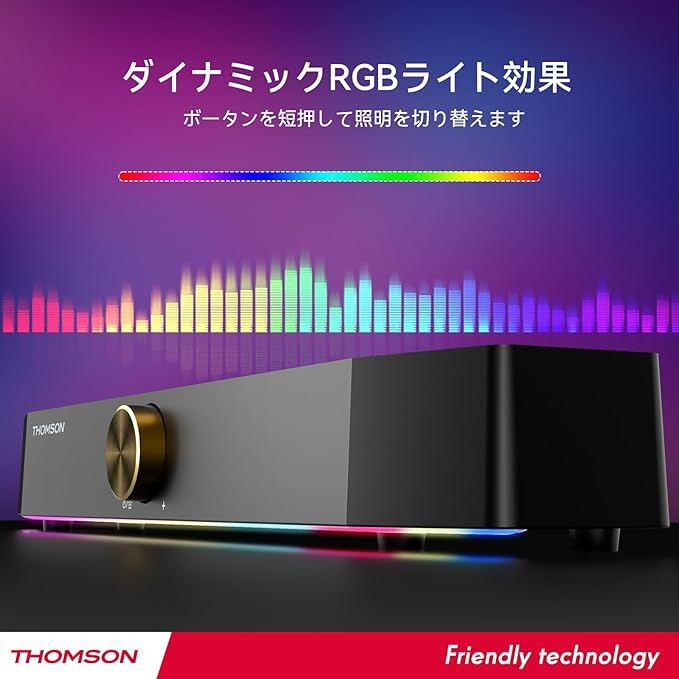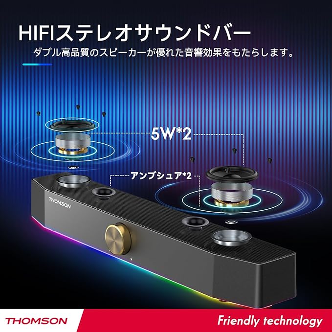 THOMSON pcスピーカー 10W(5W*2) ゲーミングスピーカー bluetooth5.0 有線USB給電式 LEDライト付き 多機能ノブ付き PC/パソコン/スマホ対応 2.0チャンネルステレオ 横置き