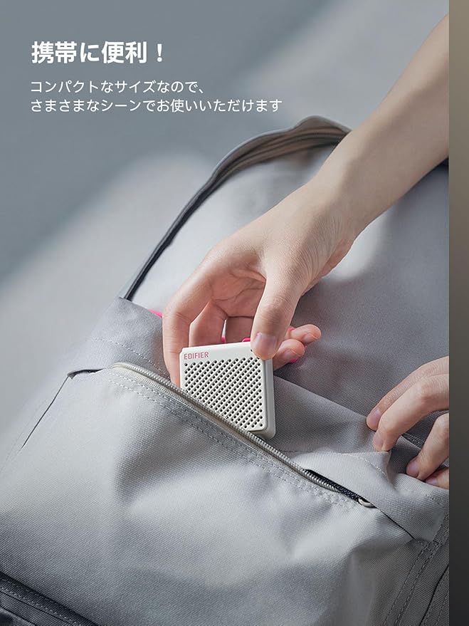 【手のひらサイズ】Edifier MP85 小型スピーカーは約70gの軽量設計により持ち運びが簡単です。いつでも、どこでもお好きな音楽を楽しめます。また、本体にストラップが付いており、バッグやリュックにつけることができます。