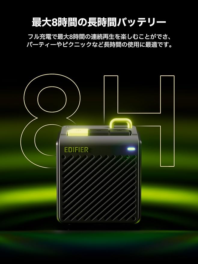 【シンプルで操作簡単】再生、一時停止、電源、音量をコントロール。フル充電で最大8時間の連続再生を楽しむことができ、パーティーやピクニックなど長時間の使用に最適です。