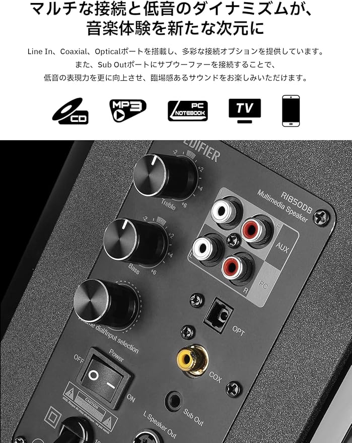 【1年保証・取扱説明書が付属】Edifier 1850DB には1年間の保証が付いております。人為的な損害を除き、お買い上げ後1年以内に何か不具合が発生した場合は、お気軽にお問い合わせください。