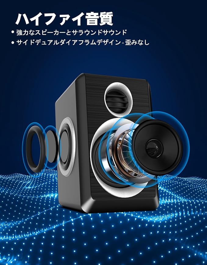 ✅【パワフルな低音】コンパクトサイズながら、内蔵の低音強化技術により力強い低音を再生。デスクスペースが限られている方でも高音質を追求でき、長時間の使用でも疲れにくく、集中力を保ちながら作業に没頭できます。