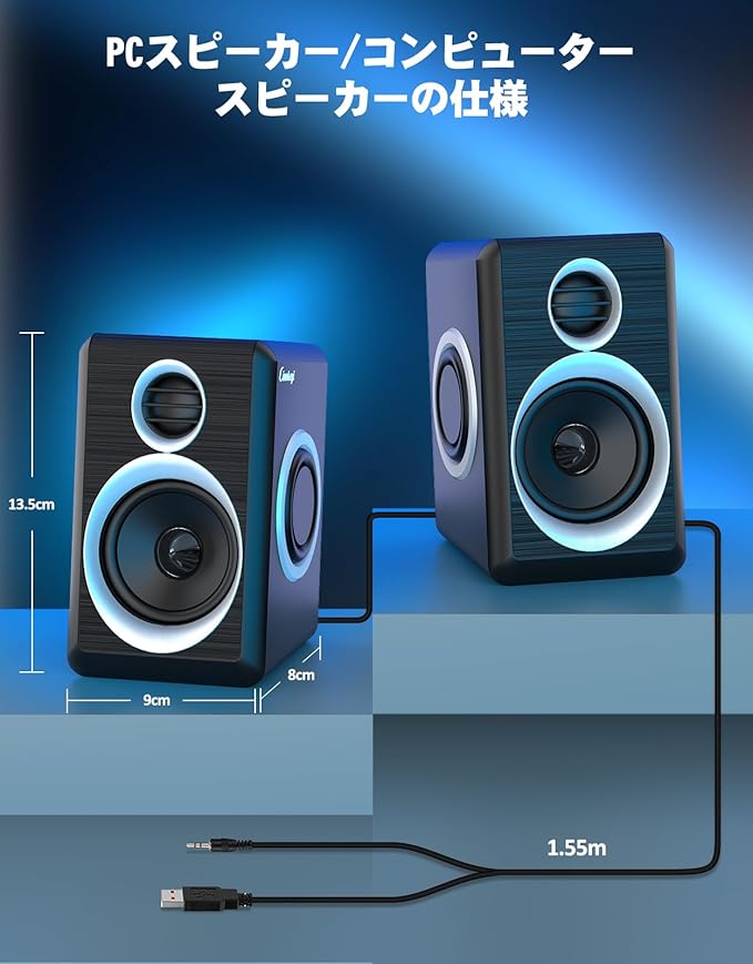 Cinnkeyi PCスピーカー 小型PCスピーカー 【2025強化版】12W出力コンピュータスピーカー 有線 小型USBスピーカー オーディオスピーカー 大音量デスクトップスピーカー モニター用スピーカー USB給電 3.5mm入力対応