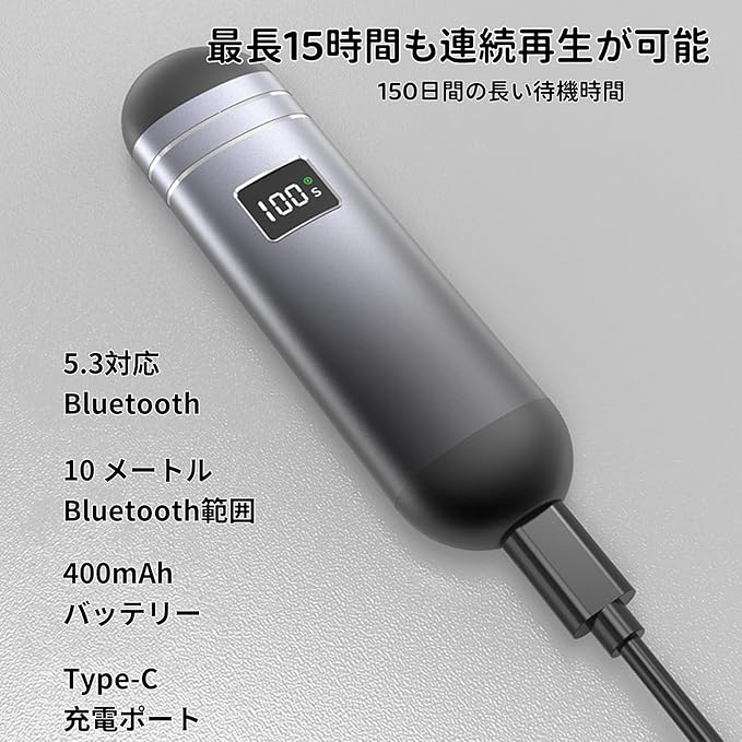 【長時間使用可能なバッテリー性能】バッテリー残量が液晶モニターで表示され、2時間でフル充電できます。USB - TypeC充電方式でモバイルバッテリーからも給電可能です。フル充電で最大15時間の連続再生が可能です。