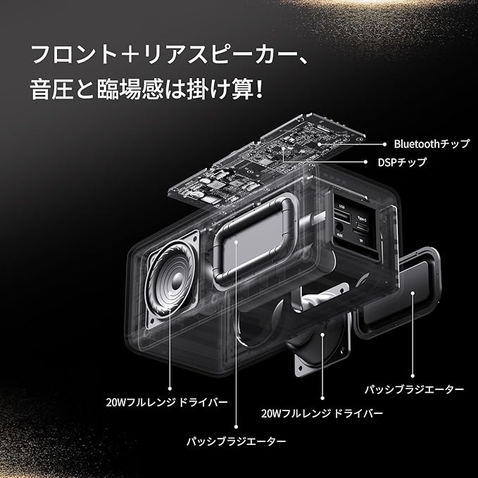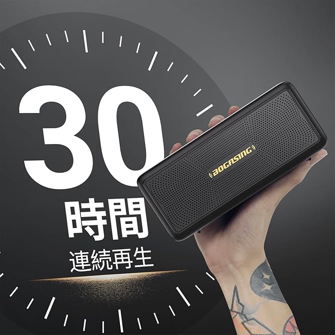 【高音質のBluetoothスピーカー】M5 ワイヤレススピーカーは、デュアルドライバと二つパッシブラジエーターを搭載しており、最大40Wの豊かなサウンドをより鮮明に響かせます、マルチディレクショナル(全方位)サウンドを採用。どこから聞いても迫力の360度サウンドが体感できます。さらに BOGASING の Bass boost テクノロジーにより、体全体に響く迫力と深みのある低音をお届けします。