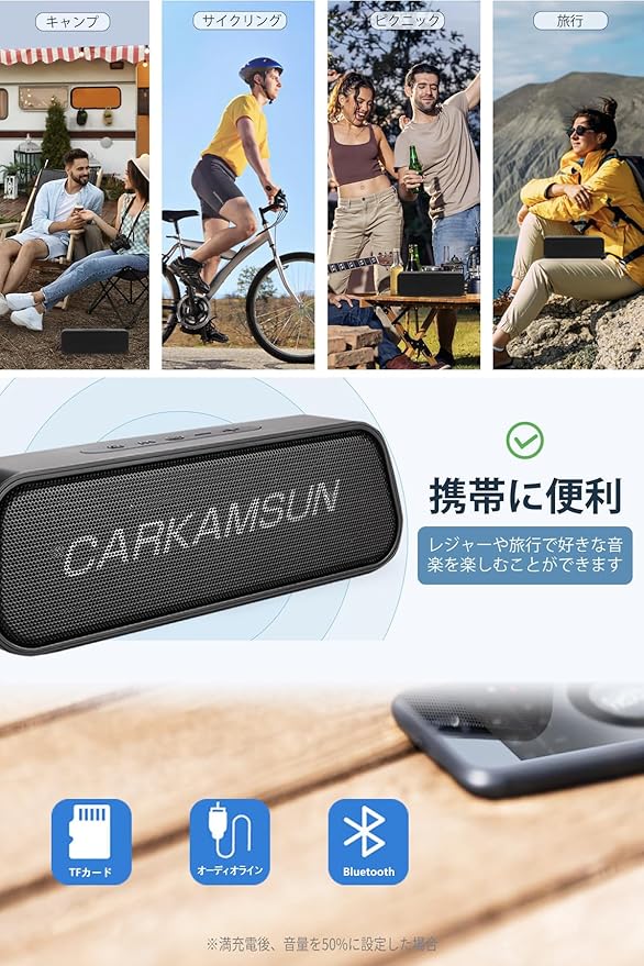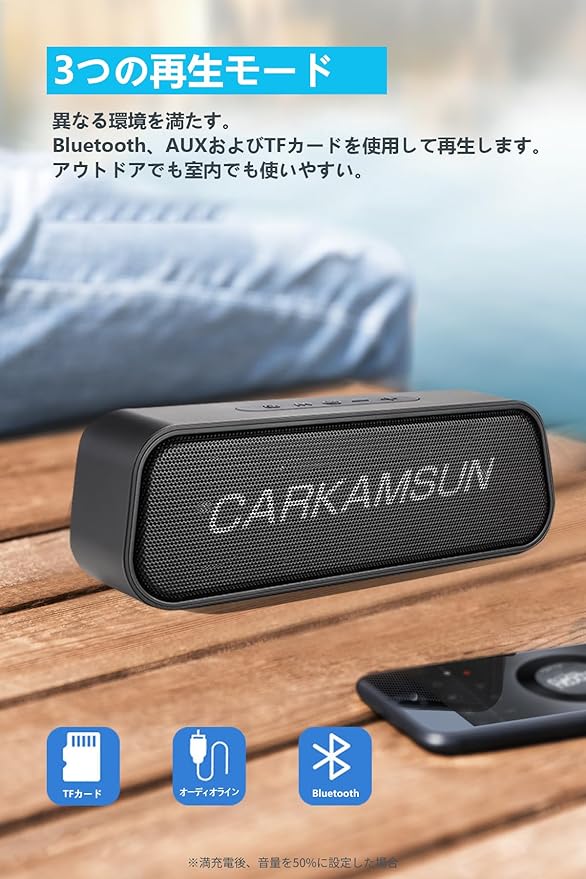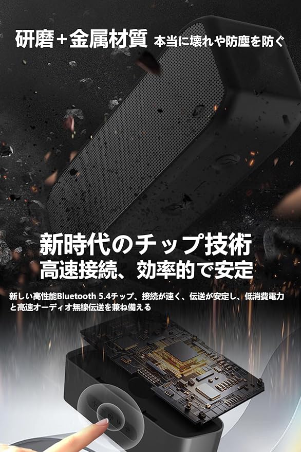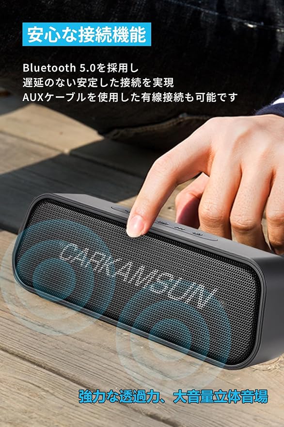 IPX7の防水規格:IPX7の防水規格対応なので、浴室内やキッチンなどの水回りでも水濡れを心配することなく音楽を楽しむことができます。