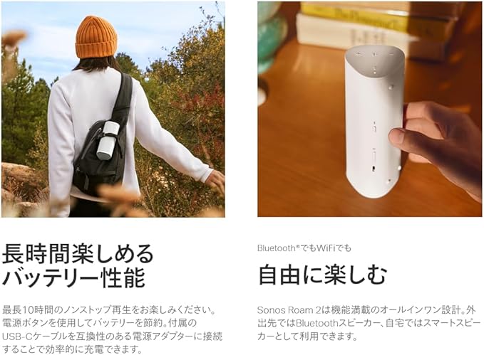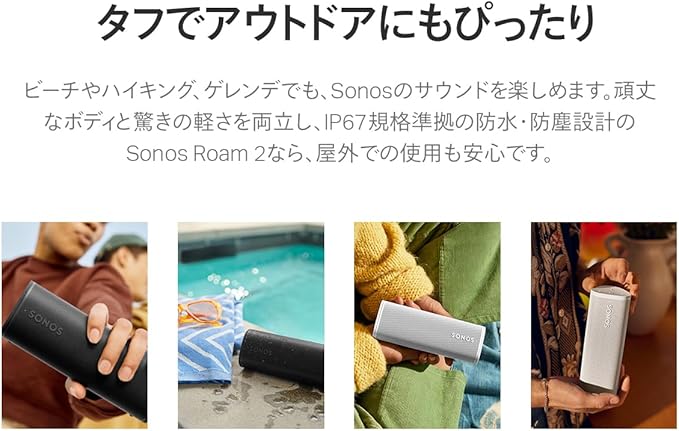 Sonos Roam2 スマートスピーカー 【VGP2025 Bluetoothスピーカー(2万円以上3万円未満)部門 金賞】Bluetooth5.2 Wi-Fi Apple AirPlay 2 防水・防塵設計 ステレオペア 最長10時間連続再生 ホワイト