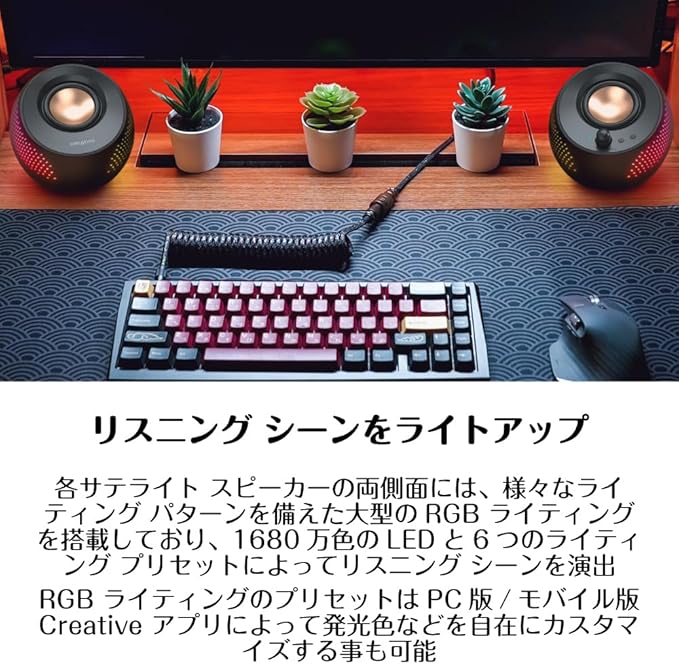 Creative Pebble X 大型RGB ライティング 2.75インチドライバー USB PDポート搭載 30W RMS/ピーク出力60W PC スピーカー SP-PBLX-BK