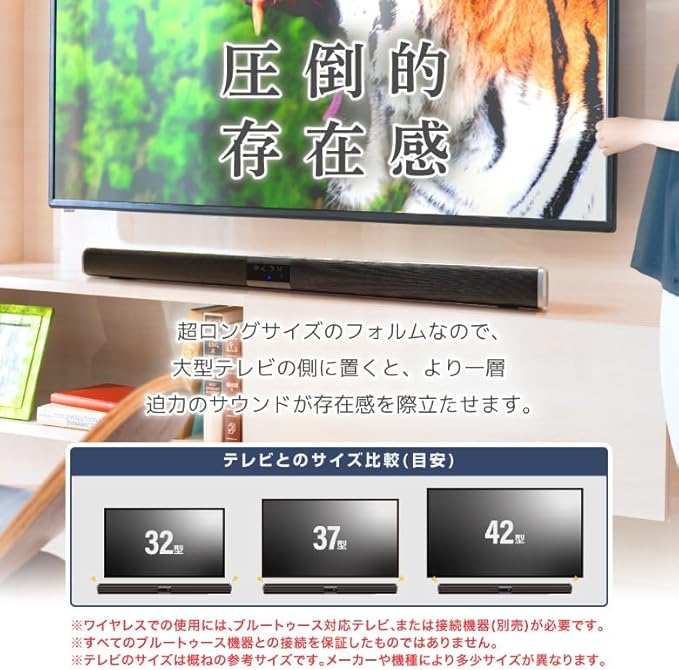 压倒的存在感のbluetoothスピーカー。超ロングサイズのフォルムなので、大型テレビの側に置くと、より一層迫力のサウンドが存在感を際立たせます。