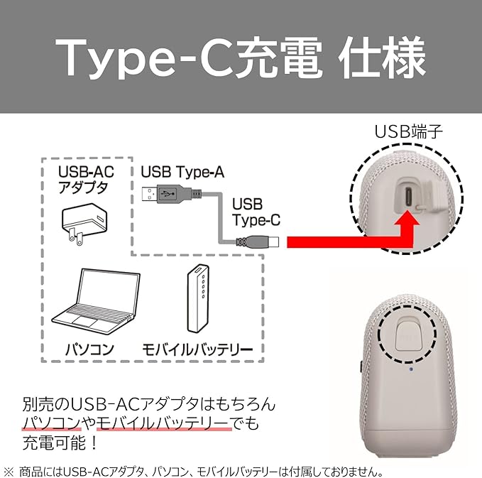 USB Type-Cで充電可能