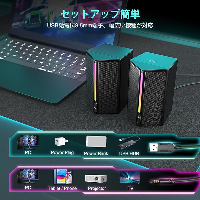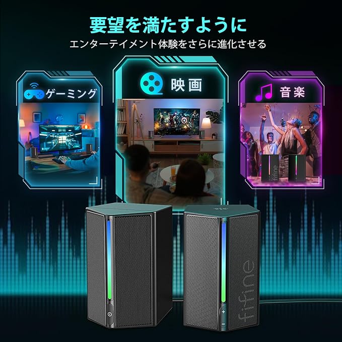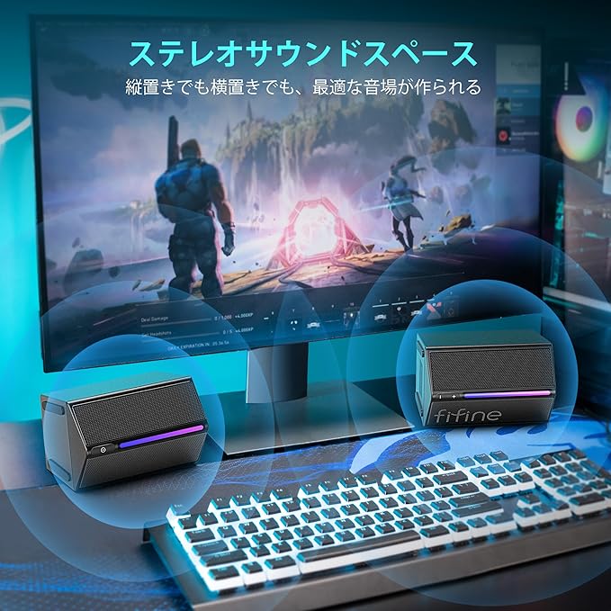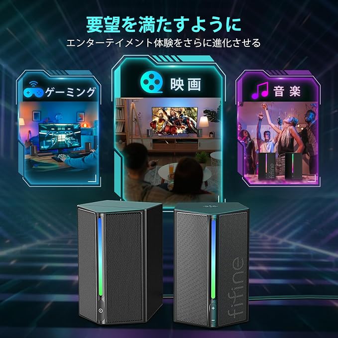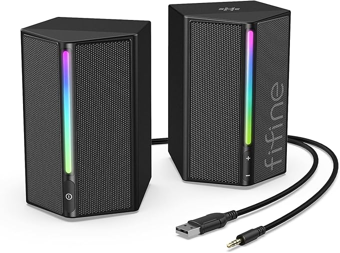 FIFINE ゲーミングスピーカー 有線 3.5mm接続 ステレオスピーカー 重低音 RGBライト制御可能 USB給電 PC/スマホ/テレビに対応 ゲーム/音楽/映画鑑賞 ブラック AmpliGame A20
