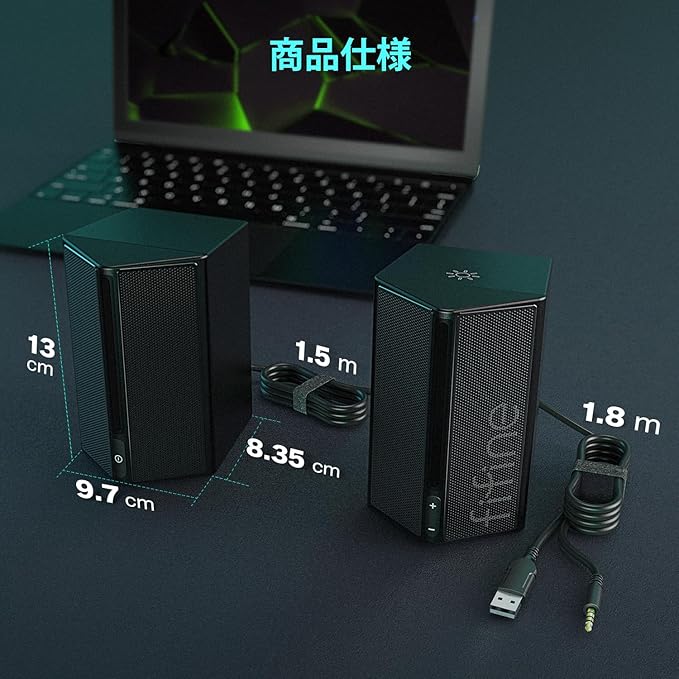 【接続が便利】汎用性の高い3.5mmミニオーディオジャックがパソコンだけではなく、ほとんどのデバイスに対応できます。有線接続のため遅延が少なくて音割れもしません。省電力のUSB電源タイプとして、パソコンのUSBポートに接続することで、手軽にお楽しみいただけます。 注意事項:電源を供給する機器によっては、ノイズが大きく聞こえる場合があります。ノイズが気になる場合は、他のPCやUSB充電器など別の機器から電源供給をしてください。