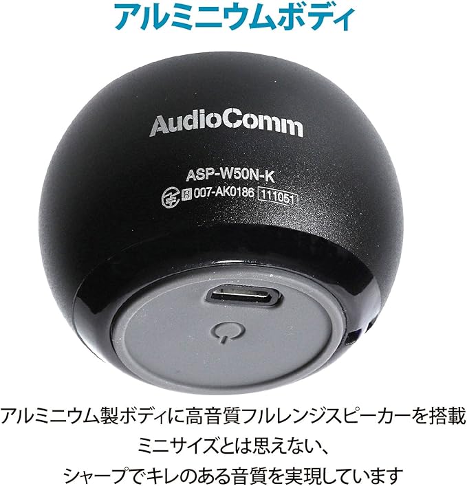 オーム(OHM) 電機 AudioComm ワイヤレスミニスピーカー ブラック ASP-W50N-K 03-2417Bluetooth 無線 ポータブルスピーカー