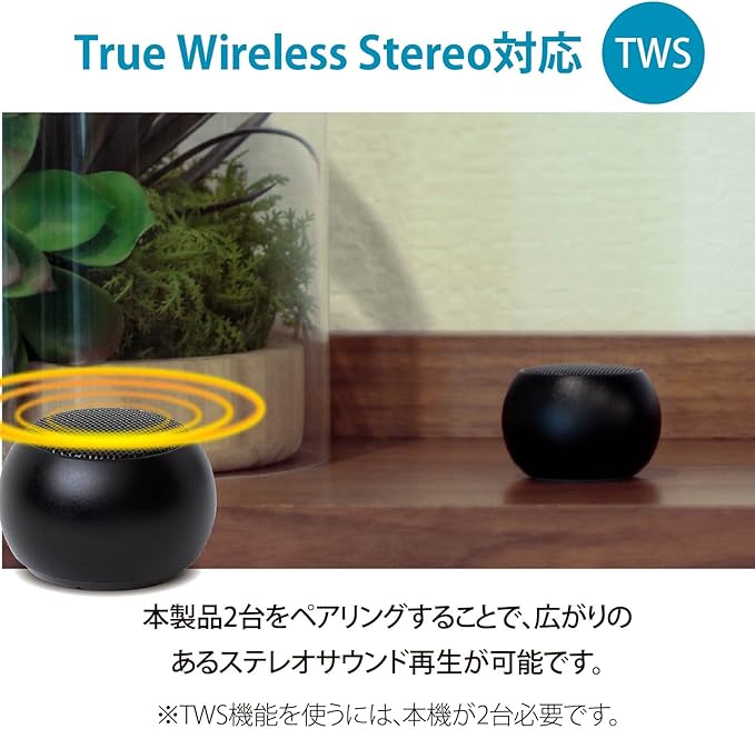 本製品2台をペアリングしてステレオサウンドが楽しめるTrue Wireless Stereo機能搭載