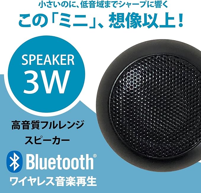 【 仕 様 】■ 電源:DC5V(USB給電…microUSB入力端子)■ 内蔵バッテリー:充電式リチウムポリマー電池(3.7V 300mAh)■ 実用最大出力:3W■ 再生周波数帯域:100Hz~20kHz■ スピーカー:口径36mm(4Ω)フルレンジスピーカー 1■ SN比:≧80dB