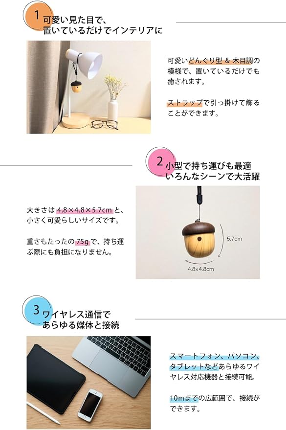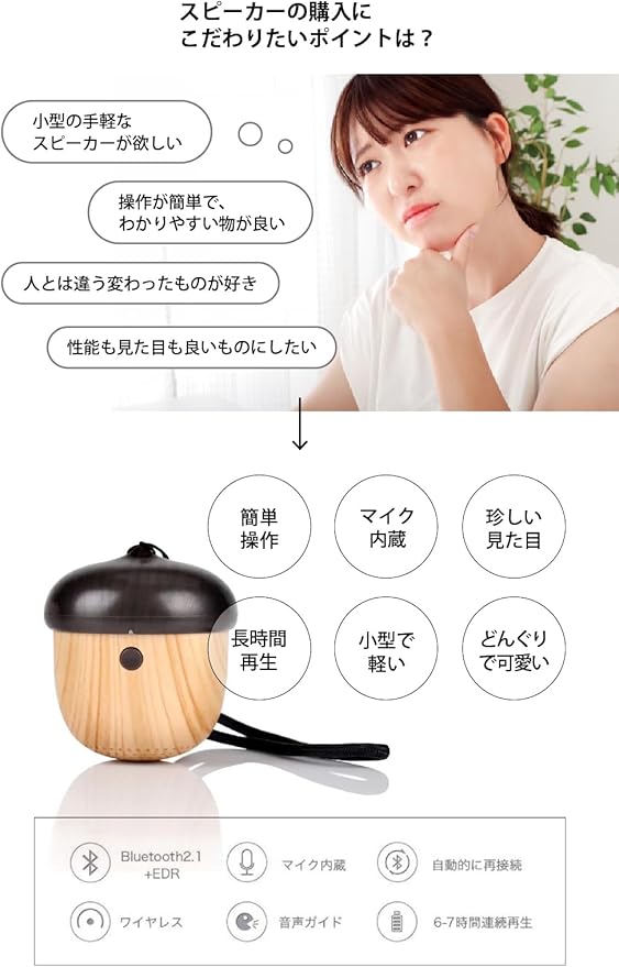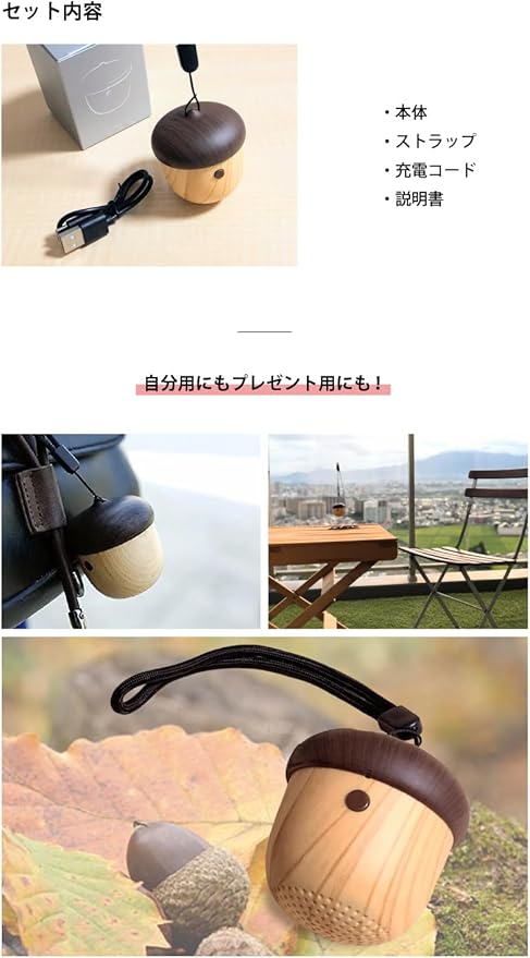 【巷で話題沸騰中】 どんぐり 木製 スピーカー bluetooth5.4 小型 可愛い 小さい 「可愛いデザイン 長い再生時間 クリアな音質 互換性高い 簡単操作」【woodsound_どんぐりスピーカー】