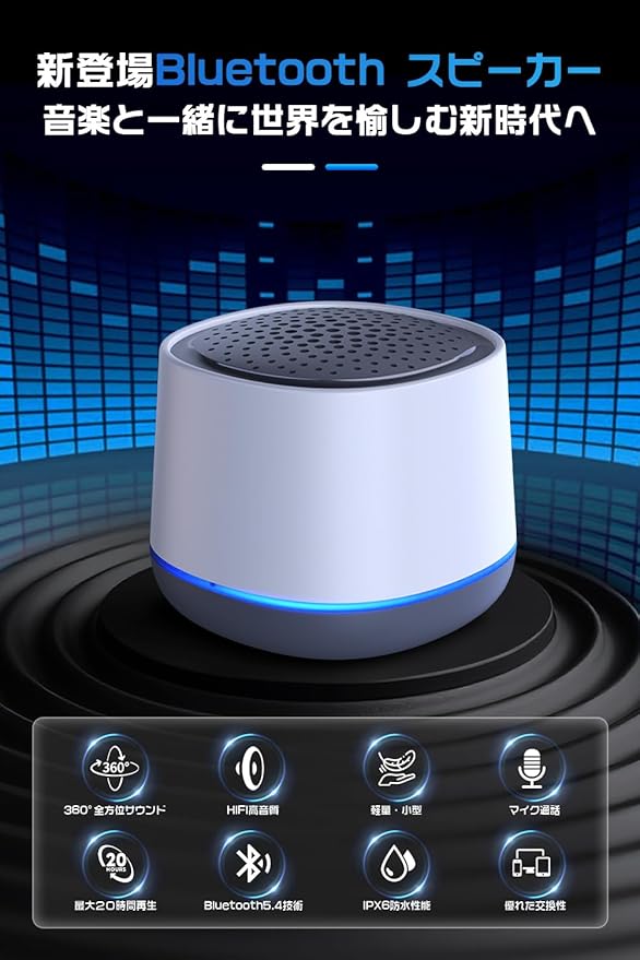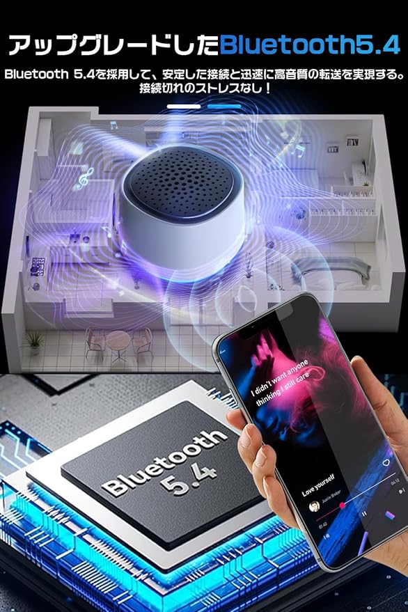【最新Bluetooth5.4で快適接続】当社のBluetoothスピーカーはBluetooth5.4チップを採用し、従来のBluetooth5.0チップと比べて省電力性と接続安定性が大幅に向上します。動画視聴時の音声遅延も最小限に抑え、ゲームや映画鑑賞でもシームレスな体験が可能です。さらに、自動ペアリング機能を搭載しており、初回接続後は電源を入れるだけでデバイスと自動的に接続。面倒な設定なしで、すぐに音楽や動画をお楽しみいただけます。