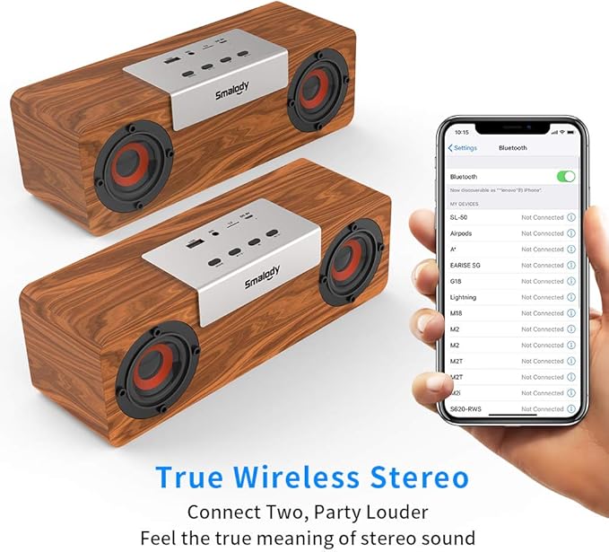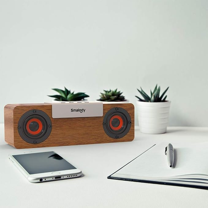 Bluetooth スピーカー, Smalody 10W木製ワイヤレススピーカー /持ち運びに便利/デュアルドライバー/でステレオサウンド/ハンズフリー/TFカード/AUX線対応 搭載 iPhone Android タブレット pcなど対応