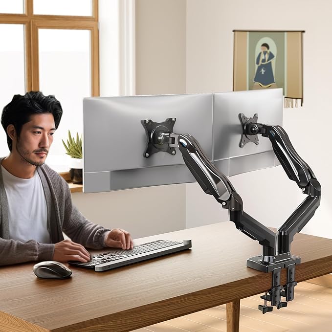 HUANUO (ファーノー) PCモニターアーム デュアル 液晶ディスプレイアーム 2画面 13~32インチ対応 耐荷重2~9kg ガススプリング式 グロメット式&クランプ式 VESA100*100 多角度調節 ケーブル収納 HNDS6