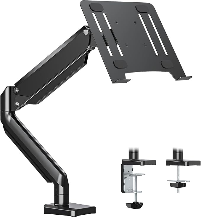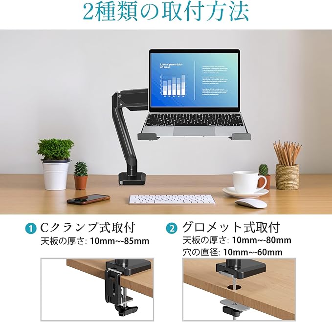 MOUNTUP ノートパソコンアーム ガススプリング式 レイ付き 17インチ対応 耐荷重8kg モニターアーム 15.6インチ ノートpc VESA規格75mm 100mm 高さ角度調整 クランプ&グロメット式 MU4007-07