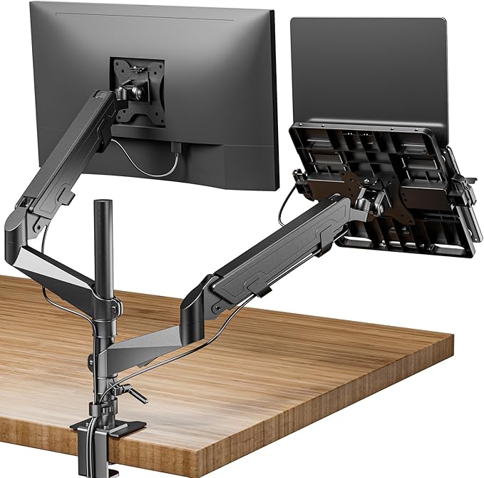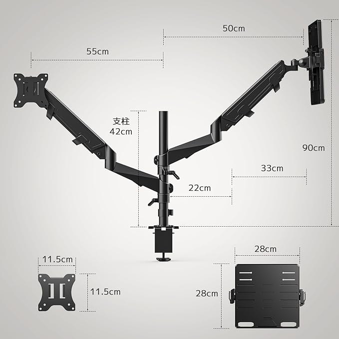 工匠藤井 デュアル ノートパソコン/モニターアーム モニターアーム 2画面 トレイ付き 高度0~90cm ガススプリング式 15~32インチ対応 耐荷重0-9kg ノートpc アーム ケーブル収納 クランプ式&グロメット式 VESA75*75/100*100