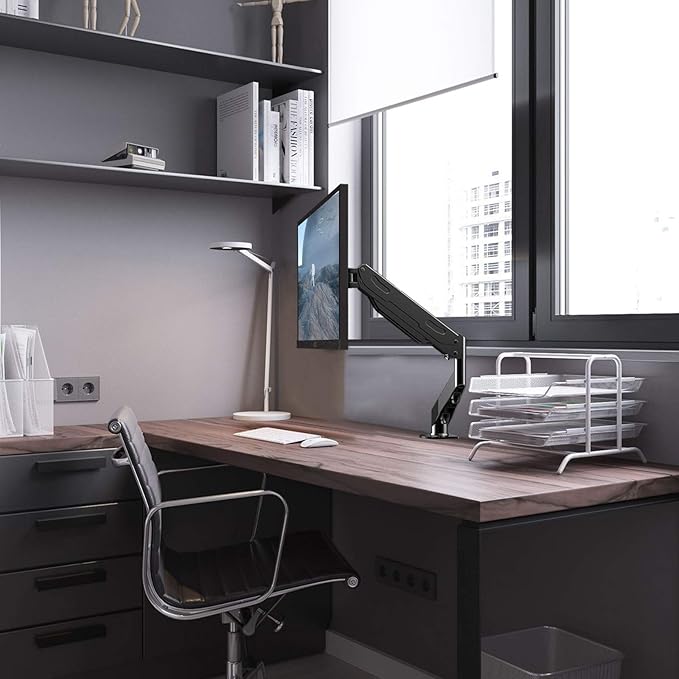 【猫背対策】ガススプリング式でスムーズな高さを調節できます。モニターアームはいろんな角度を調整できて自由度は高いです。そして、立てで仕事もできます。角度や距離などが自分に合わせるにして、背や首の疲れをリラックスします。
