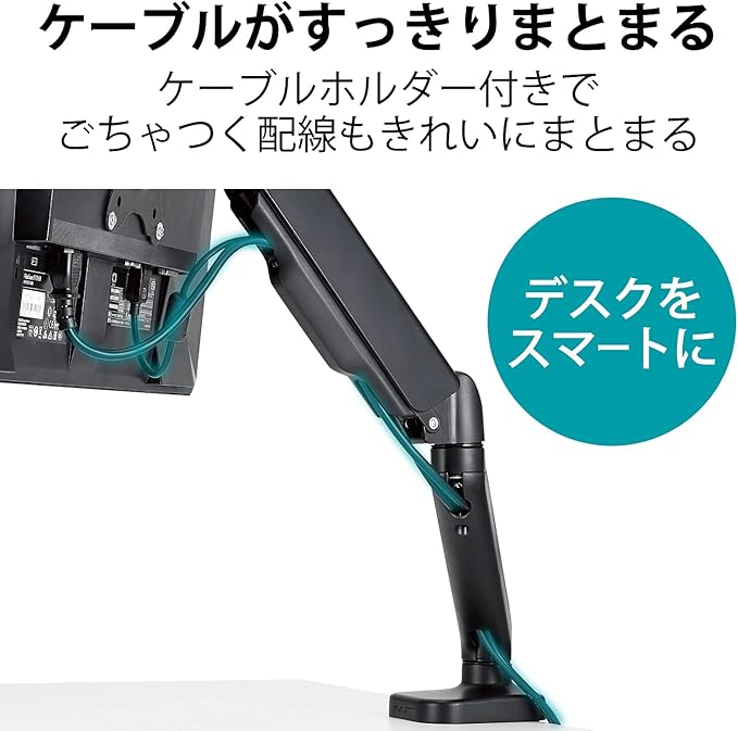 ■液晶ディスプレイからのケーブルをすっきりまとめる事ができるケーブルホルダー付。