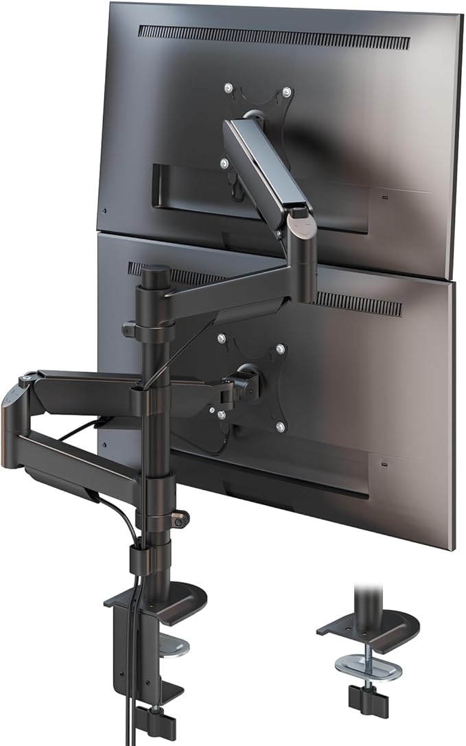 ACCURTEK デュアルモニターアーム 2画面 17-32インチ対応 VESA75x75/100x100 耐荷重2-9kg ポールマウント 縦/横型 クランプ&グロメット式