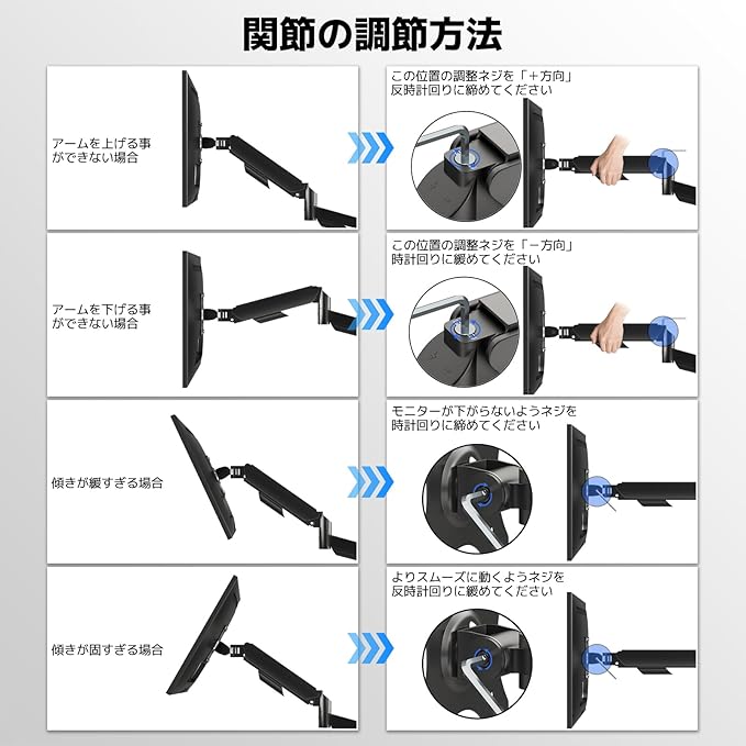 多角度調整機能:チルト 90 、スイベル 90 、回転 180 の調整範囲で、視野を自由にカスタマイズできます。快適な作業環境を実現します