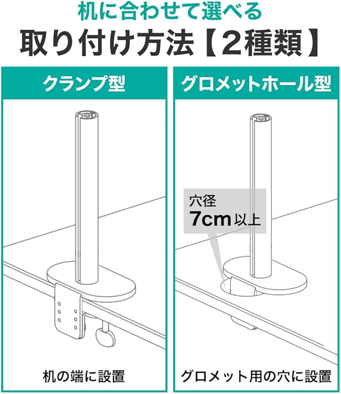 取り付けタイプ テーブルトップマウント (クランプ式、グロメット式 対応)