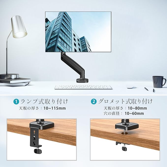 MOUNTUP PCモニターアーム ディスプレイアーム 13~32インチ対応 ガススプリング式 耐荷重2~8kg 液晶モニタースタンド クランプ式 グロメット式 VESA対応 75x75mm 100 100mm