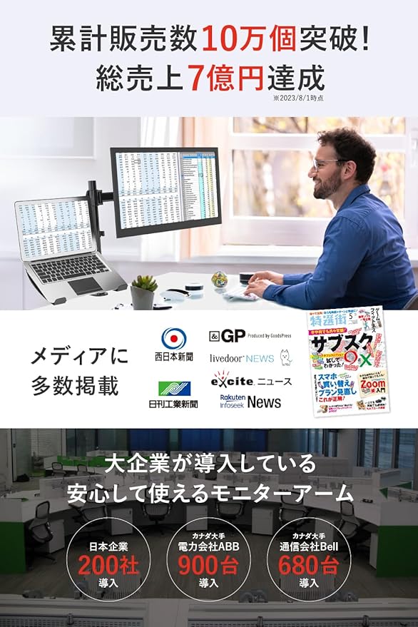 ✅【 安心して使える 大企業が導入 】安定性を評価され、大企業が導入。いくつもの大手企業が500台以上導入。 傾き具合、ぐらつき具合は商品ページ下部をご覧ください。動画でご確認いただけます。✅【 日本とカナダで評価されてます 】日本有名メディアに多数掲載。累計販売数10万個突破。総売り上げ7億円達成。 .