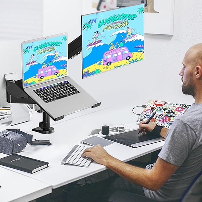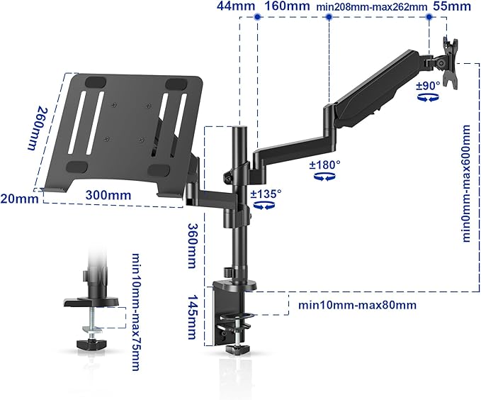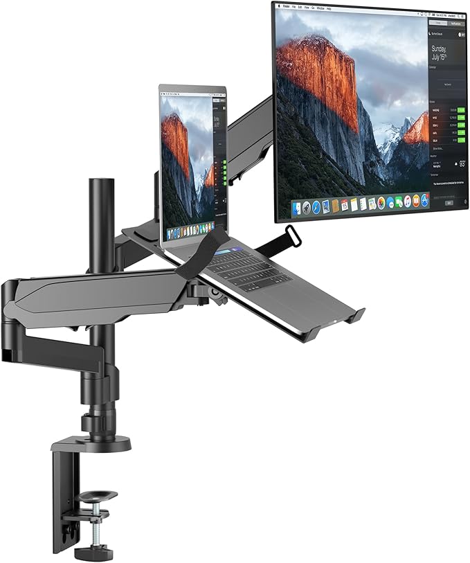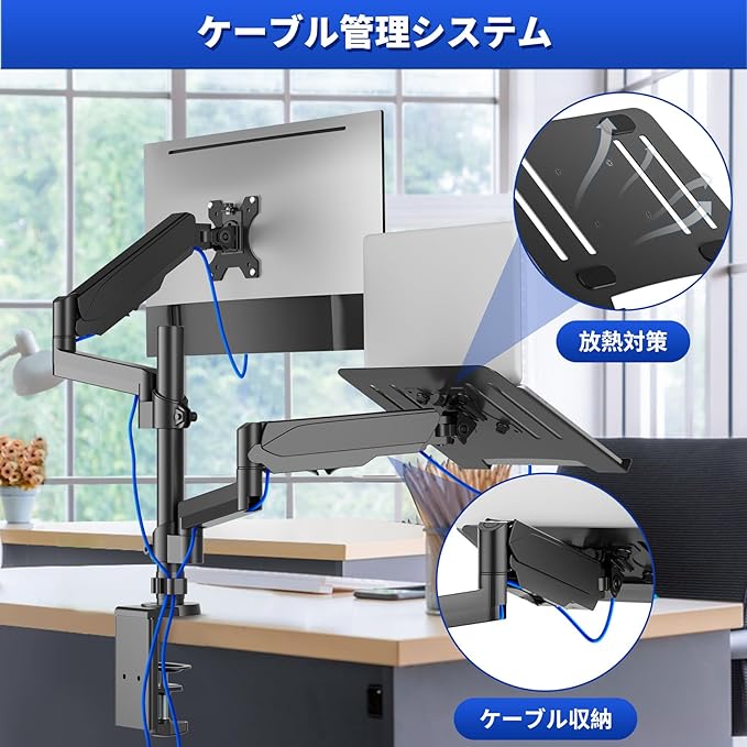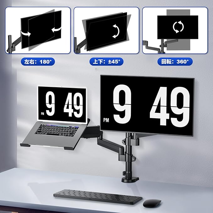 ➤省スペース:モニターとノートパソコンを同時に取り付けることができ、多くの人に適用されます。人間工学に基づいたデザインで、仕事の疲れを緩和するだけでなく、省スペースしてデスク周りがスッキリします!PCモニターとノートパソコンという組み合わせになってますが、2台モニターをつけることも可能です。PC&ノートパソコンのデュアル環境の方にお勧めです。