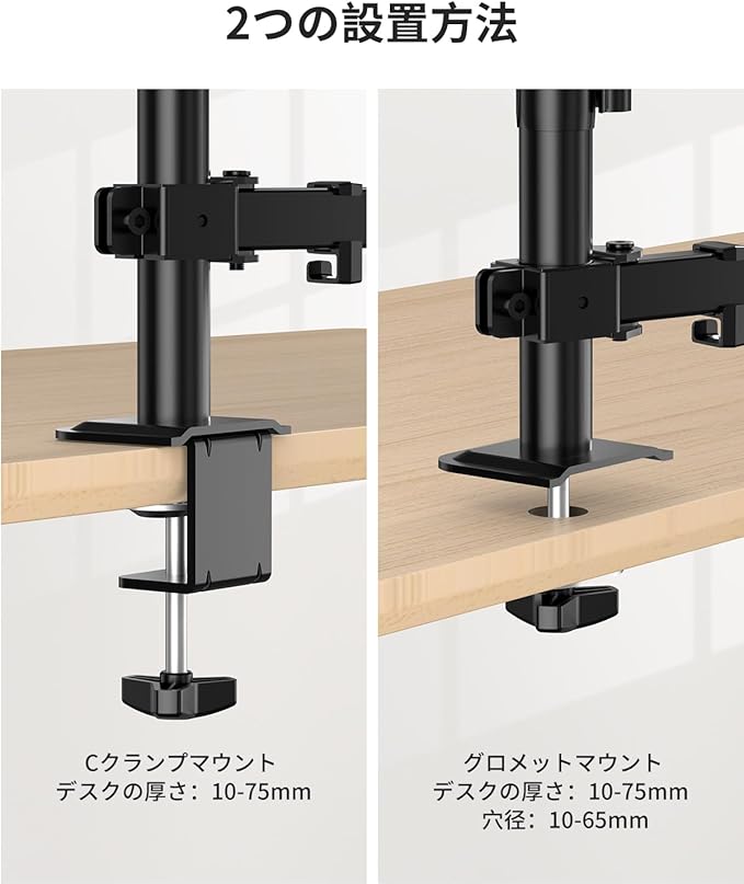 FORGING MOUNT ノートパソコンアーム モニターアーム13~32インチ対応 耐荷重各アーム10KG デュアルディスプレイアーム VESA75*75/100*100 グロメット式&クランプ式 多角度調節 ケーブル収納