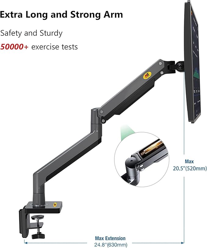 【簡単な取り付け】シングルアームはCクランプまたはグロメット穴取り付け。 Cクランプの天板厚さは20~90 mmまでのデスクに最適です。グロメットの天板厚さは20~90 mmまでのデスクに最適で、ほとんどのユーザーのケースに簡単に取り付けることができます。