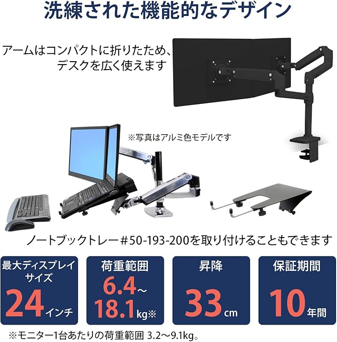 ERGOTRON エルゴトロン LX モニターアーム デスクマウント デュアル 縦/横型 2画面 マットブラック 24インチ(6.4~18.1kg)まで VESA規格対応 45-492-224