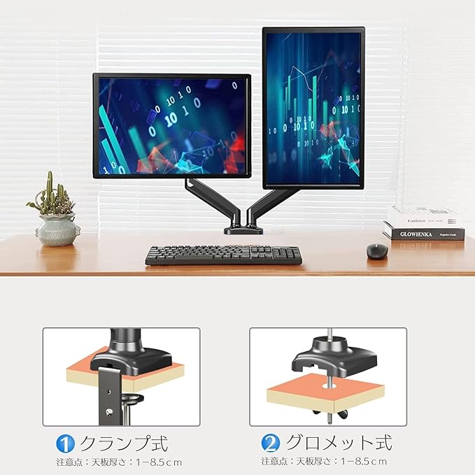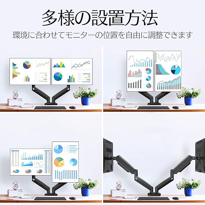 モニタースタンド アーム2画面 / デュアル ディスプレイアーム/品質ガススプリング内蔵/多角度調節 /13-27インチ対応 耐荷重2~13kg /曲面/液晶 (モニターアーム2画面用)