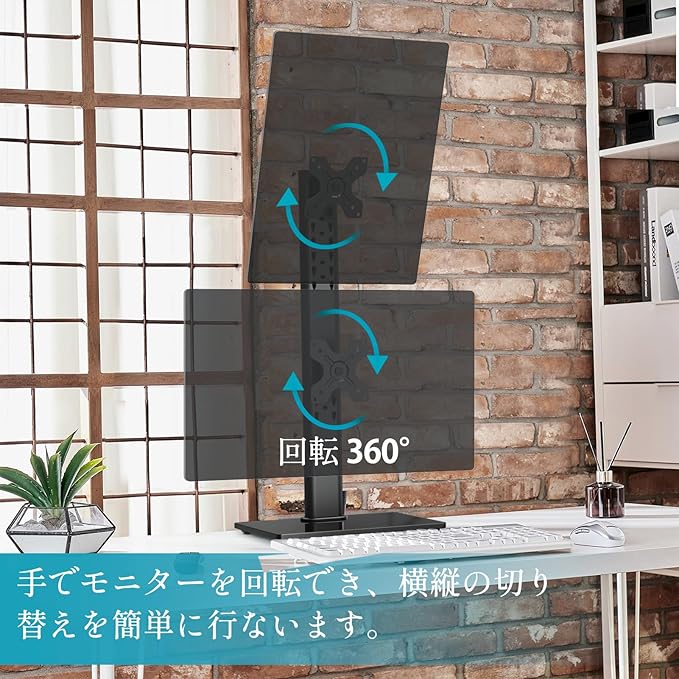 【2画面PC作業】ディスプレイ2画面を縦並ぶことを実現でき、スペースを大きく節約します。作業面を解放し、机上スペースを活用し、仕事の効率がアップ!