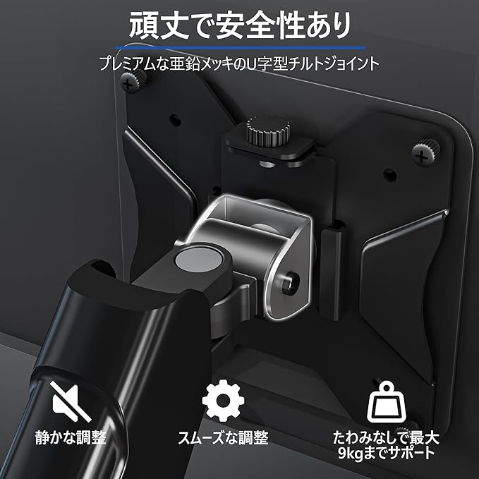 ✅ 高品質なガススプリング機構 - 高強度のガススプリングが内蔵されており、750N⋅mの力でモニターをスムーズに調整できます。30,000サイクルの耐久性テストにも合格しており、長期使用でも安定した性能を提供します。