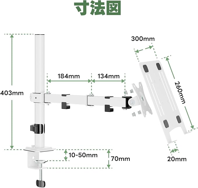 ☻【商品仕様】VESA(75mm x 75mm、100mm x 100mm)に準拠した17インチまでのノートパソコンと13-27インチのモニターを取り付けます。耐荷重最大8KG。