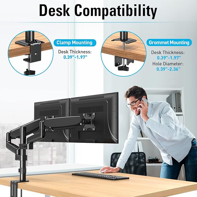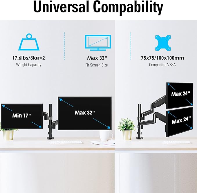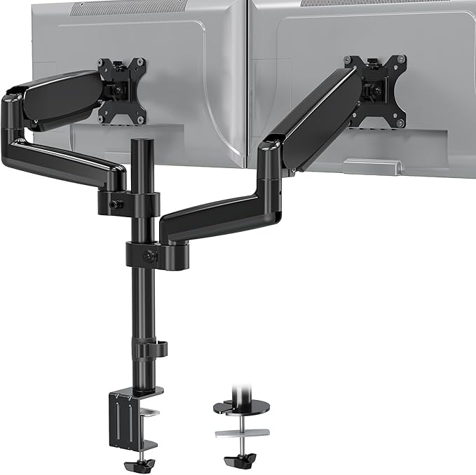 MOUNTUP モニタアーム 液晶ディスプレイアーム ガススプリング 16~32インチ対応 縦並び 耐荷重2~8kg VESA75*75 100*100 グロメット式 クランプ式 ポール アーム付き 角度調節 (2画面)