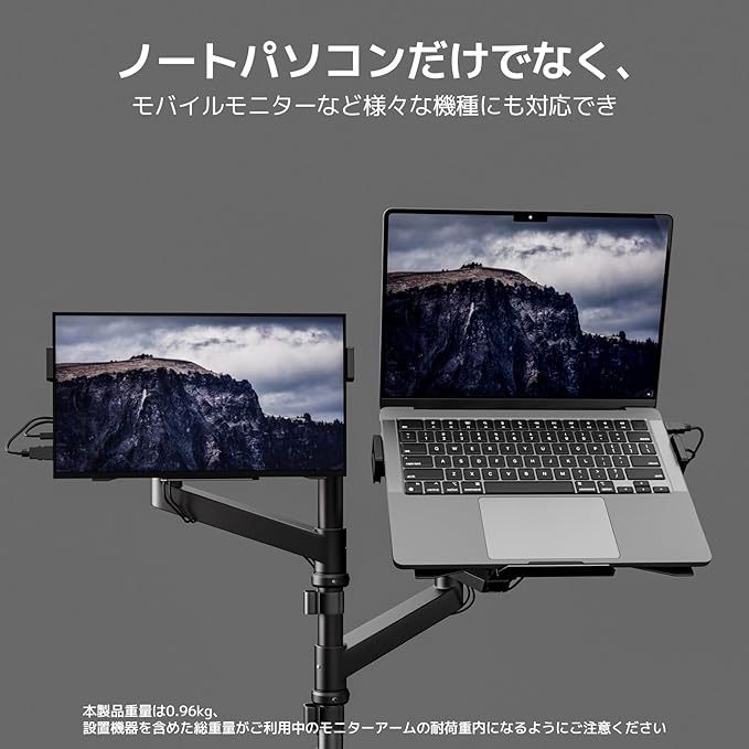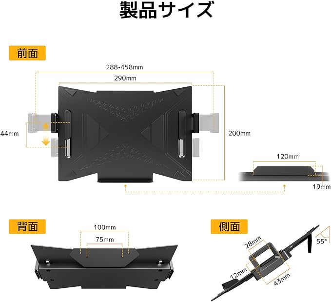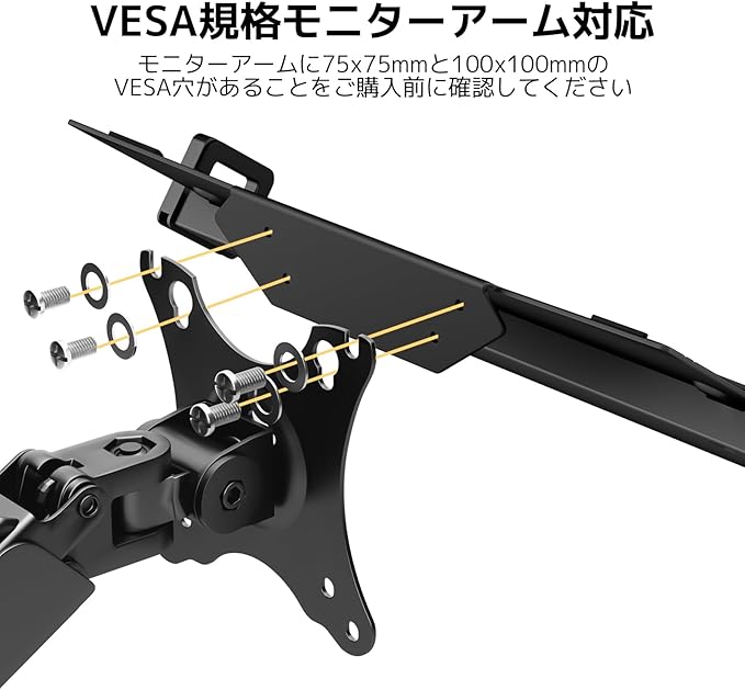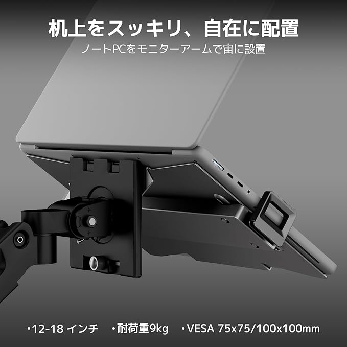 ACCURTEK ラップトップホルダー ノートパソコントレイ モニターアーム用 滑り止めシート付きマウント スチール製 12-18インチ VESA規格75x75mm 100x100mm 耐荷重9KG 伸縮可能