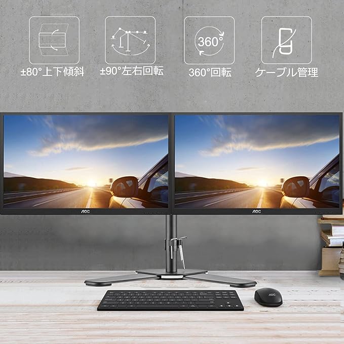 【2画面PC作業】モニタースタンドやモニター台の代わり、本デュアルモニターアームは2画面作業することを実現でき、スペースを大きく節約します。また、ケーブルクリップがあるので、ケーブルを簡単に整理&保護し、見た目はスッキリとなります。作業面を解放し、机上スペースを活用し、仕事の効率がアップ!