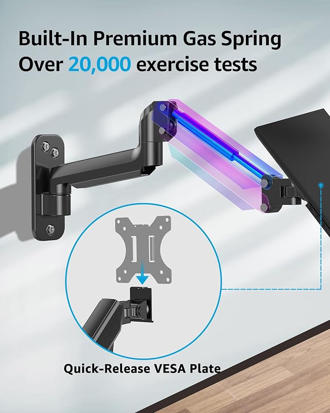 MOUNTUP PCモニターアーム 壁掛け 液晶ディスプレイアーム ガススプリング 13~32インチ対応 耐荷重1~8kg 壁掛アーム式 VESA75mm 100mm 上下左右角度調節 MU2003-07