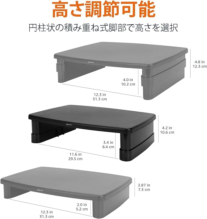 Amazonベーシック 長方形モニタースタンド 調節可能ブラック